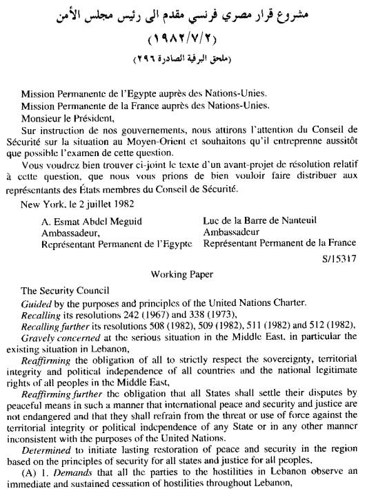 مشروع القرار المصري ـ الفرنسي المُقدم إلى رئيس مجلس الأمن