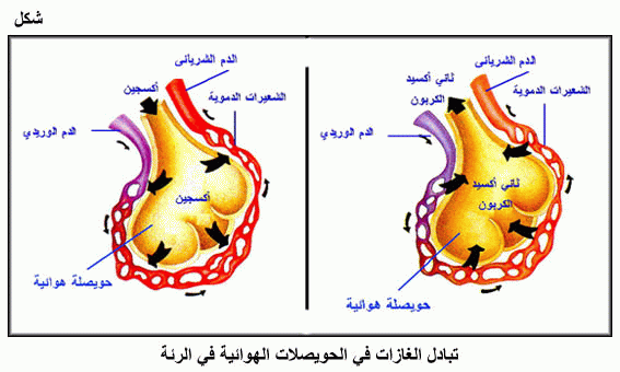 تبادل الغازات في الحويصلات الهوائية في الرئة