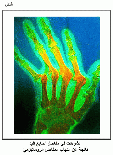 تشوهات في مفاصل أصابع اليد ناتجة عن التهاب المفاصل الروماتيزمي