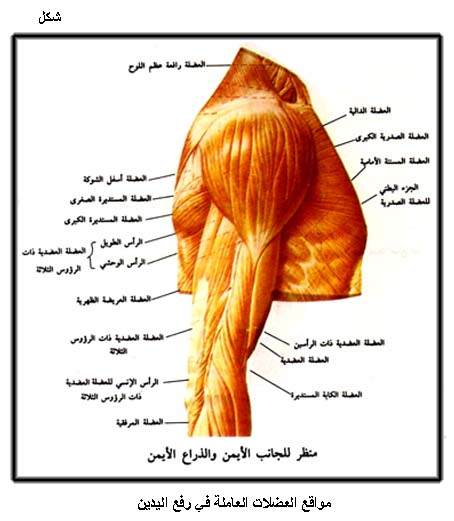 مواقع العضلات العاملة في رفع اليدين