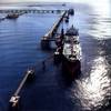 أذرع التحميل تمتد إلى إحدى الناقلات الرأسية في فرضة التصدير بميناء ينبع