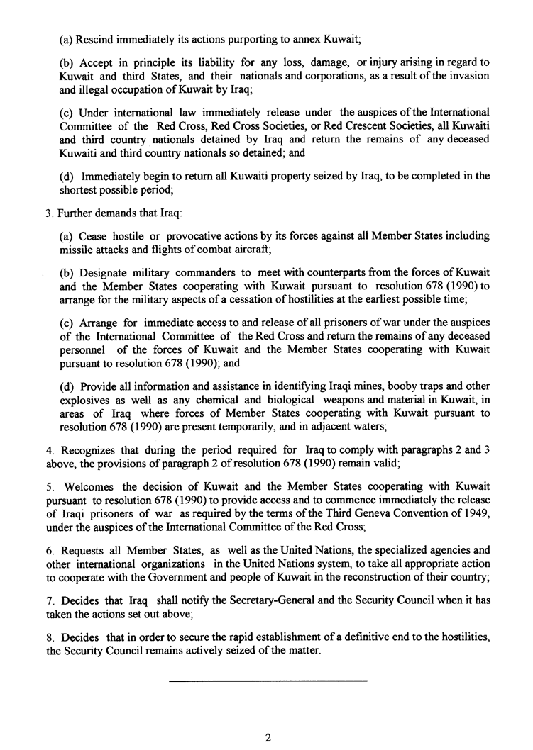يحيط بتوقف عمليات القتال الهجومية ويطالب العراق بتنفيذ قرارات مجلس الأمن ال12 ذات الصلة تابع
