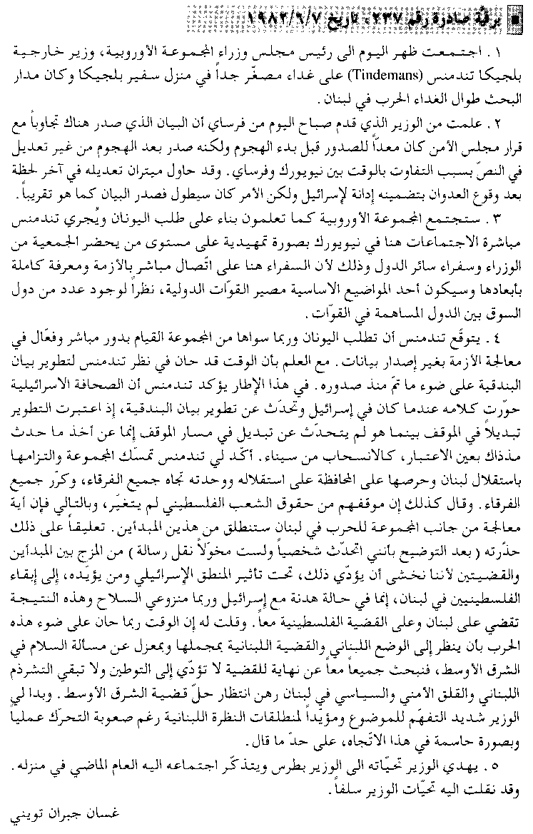 البرقية الرقم (273) بتاريخ 7 يونيه 1982،