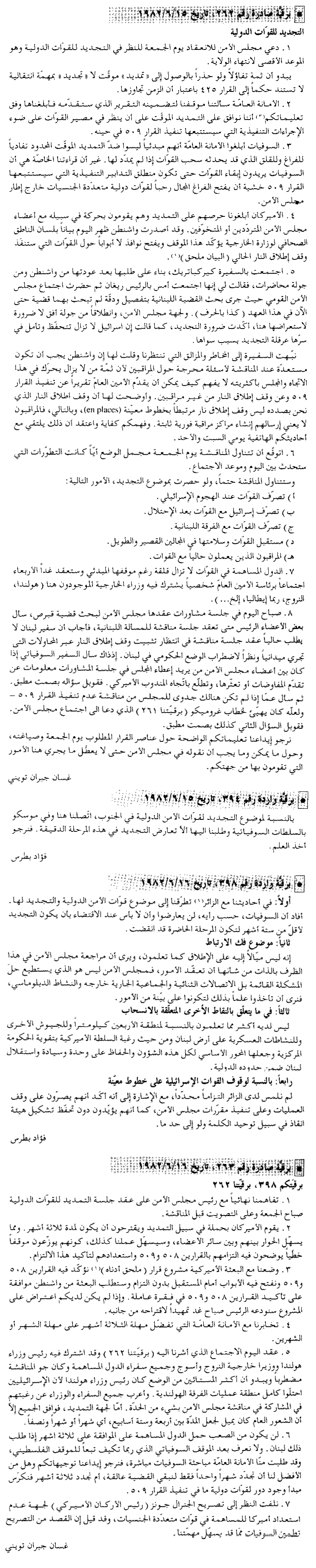 البرقيتان الرقمان 262، في 15 يونيه 1982؛ و263، في 16 يونيه 1982؛
