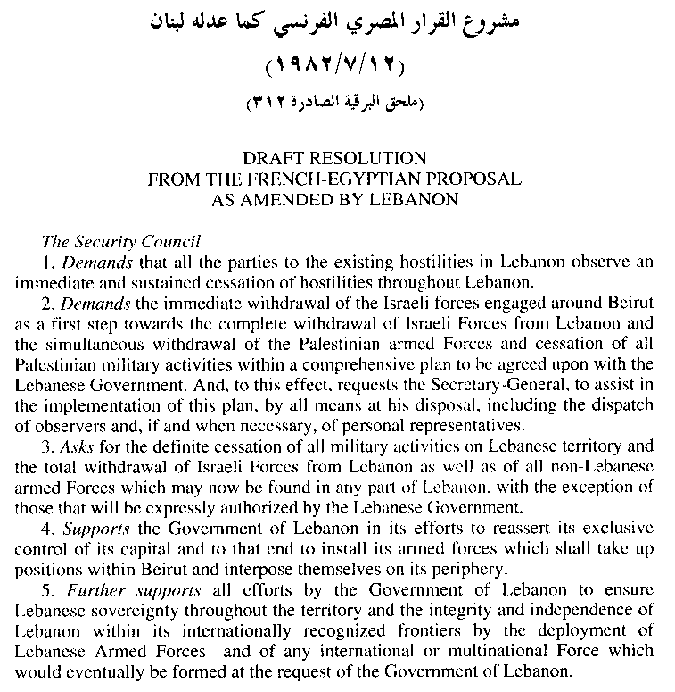 مشروع القرار المصري ـ الفرنسي المعدل بناءً على طلب لبنان،