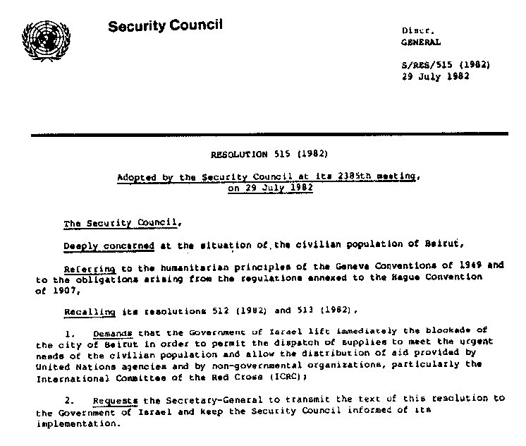 نص قرار مجلس الأمن الرقم (515)، بنصيه العربي والإنجليزي