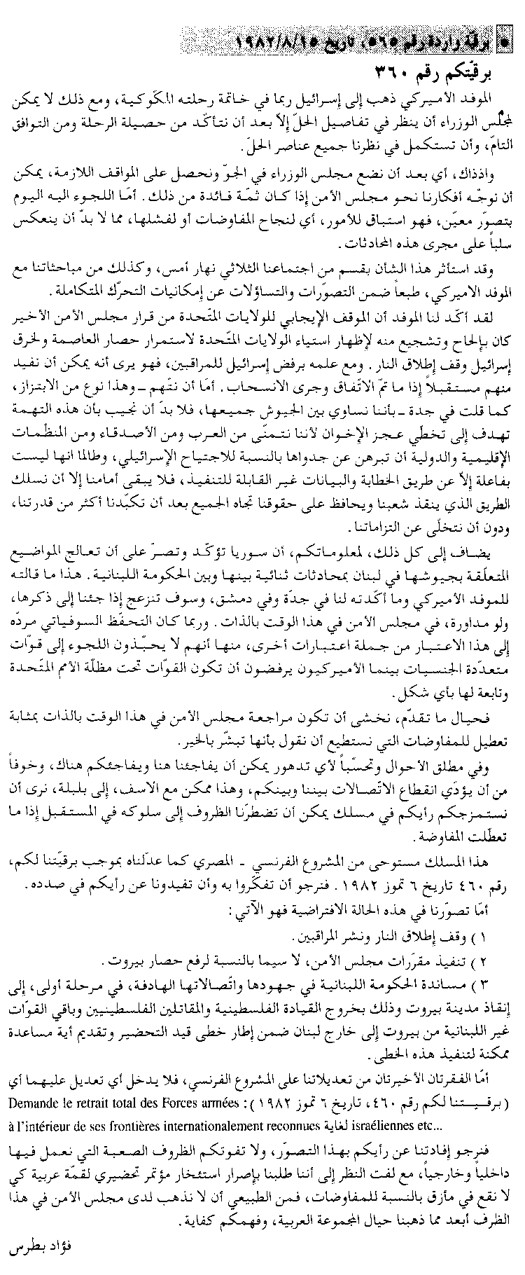 البرقية الرقم 565، في 15 أغسطس 1982،