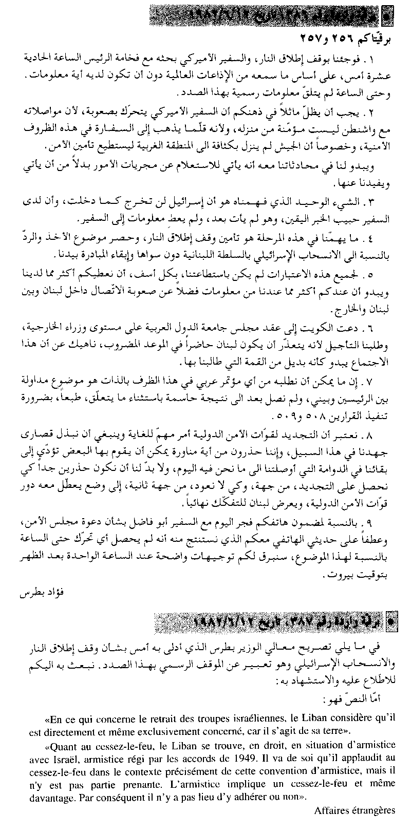 والمرسلتين من وزير الخارجية اللبناني إلى السفير اللبناني بالأمم المتحدة