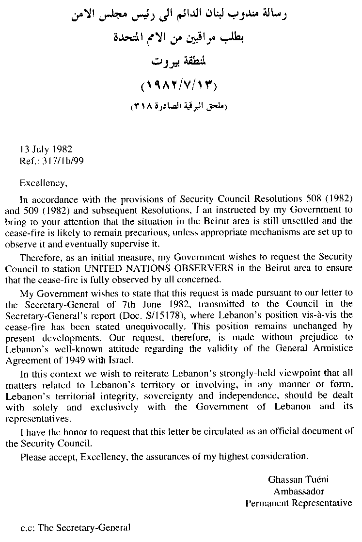 في شأن طلب مراقبين من الأمم المتحدة لمنطقة بيروت