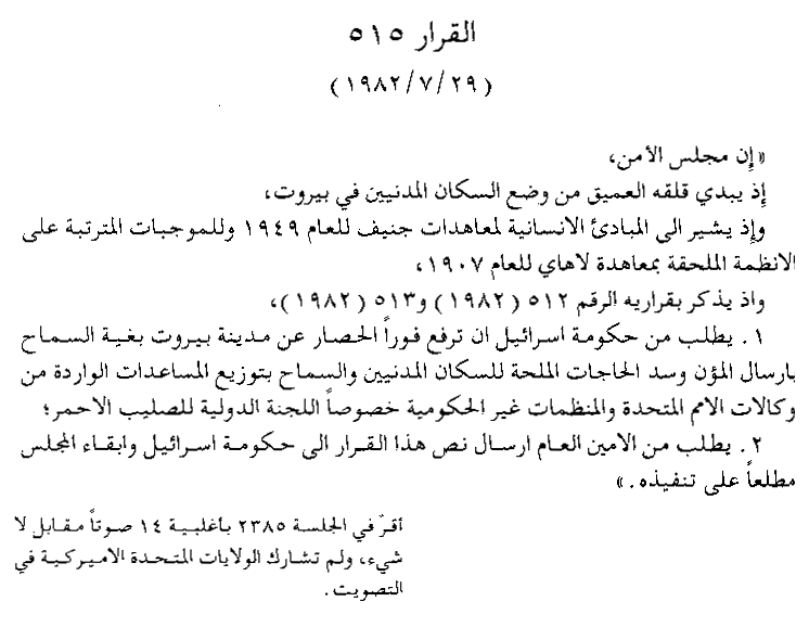نص قرار مجلس الأمن الرقم (515)، بنصيه العربي والإنجليزي