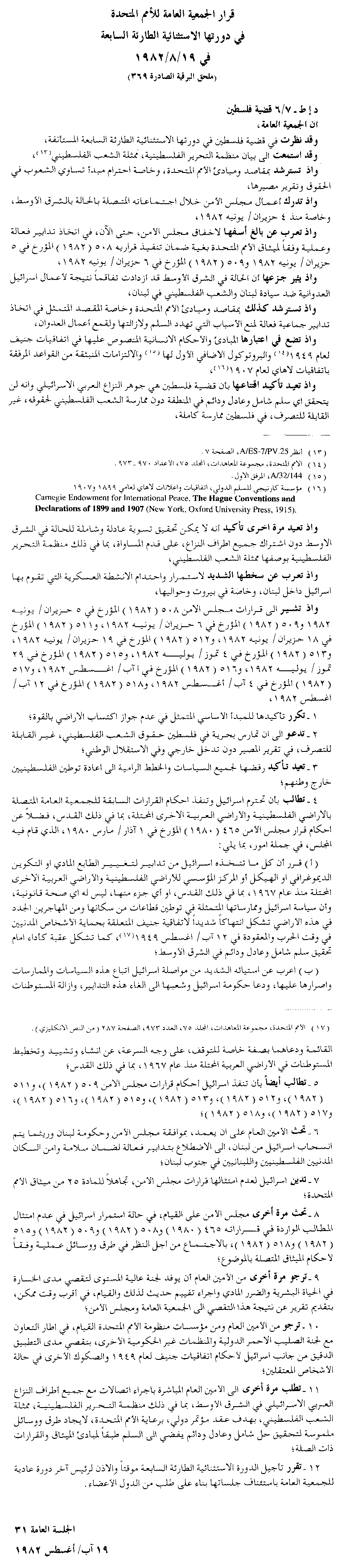في دورتها الاستثنائية الطارئة السابعة في 19 أغسطس 1982