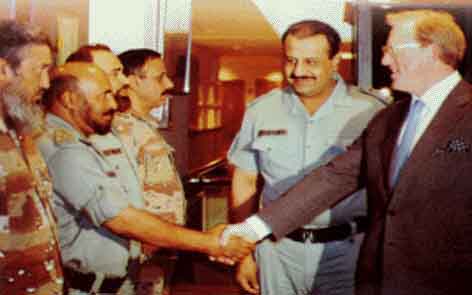 أُقَدم بعض ضباط أركاني إلى وزير الدفاع البريطاني، توم كينج، وهم (من اليمين إلى اليسار): اللواء طلال العتيبي، والعميد فيصل بالي، واللواء عطية الطوري، والعميد سالم عويمر.