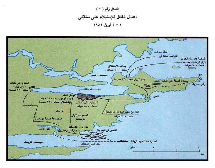 بدأت سفن مجموعة العمليات رقم (40) تقترب من الشاطئ الشرقي لجزيرة "فوكلاند الشرقية خلال ليلة 1/2 أبريل"، وفي الساعة 2100 تسللَّت القوارب المطاطية من المدمرة "سانتاسيما ترينداد" تحمل أفراد وحدة كوماندوز مشاة البحرية (نحو ستين فرداً) وولَّت وجهتها نحو "بورت هارييت" جنوب "ميناء ستانلي Stanley Harbour"، حيث كان عليها التقدم شمالاً سيراً على الأقدام والاستيلاء على كلِّ من مقر الحكم وثكنات الحامية البريطانية.