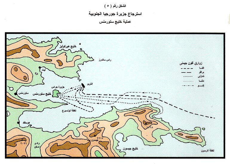 2. استعادة جزيرة "جورجيا الجنوبية South Gorgia"(الخريطة الرقم 5، والشكل الرقم 3، والشكل الرقم 4، والشكل الرقم 5، والشكل الرقم 6)