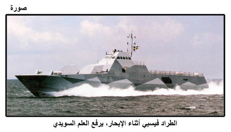 الطراد فيسبي أثناء الإبحار، يرفع العلم السويدي