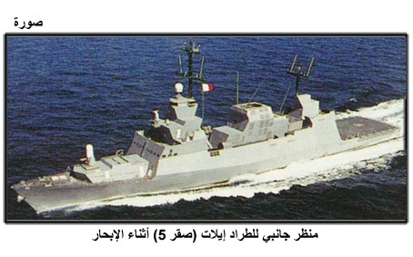 منظر جانبي للطراد إيلات (صقر 5) أثناء الإبحار