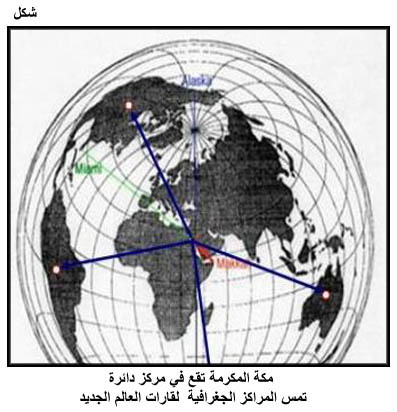مكة المكرمة تقع في مركز دائرة تمس المراكز الجغرافية لقارات العالم الجديد