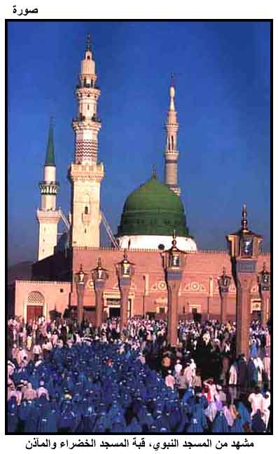 مشهد من المسجد النبوي، قبة المسجد الخضراء والمآذن