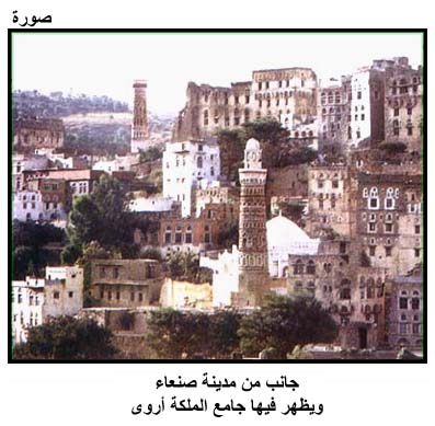جانب من مدينة صنعاء ويظهر فيها جامع الملكة أروى