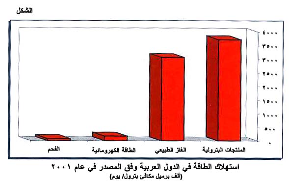 استهلاك الطاقة في الدول العربية وفق المصدر في عام 2001