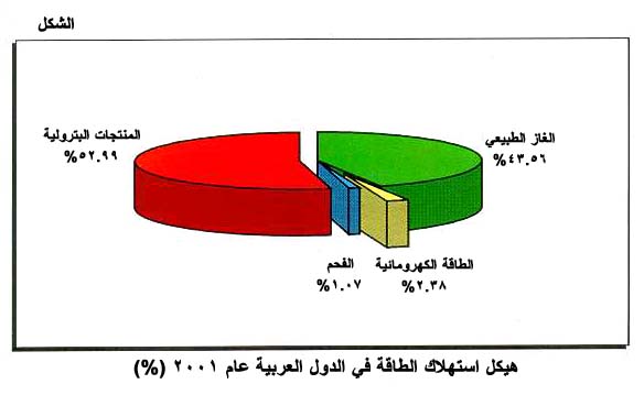 هيكل استهلاك الطاقة في الدول العربية عام 2001