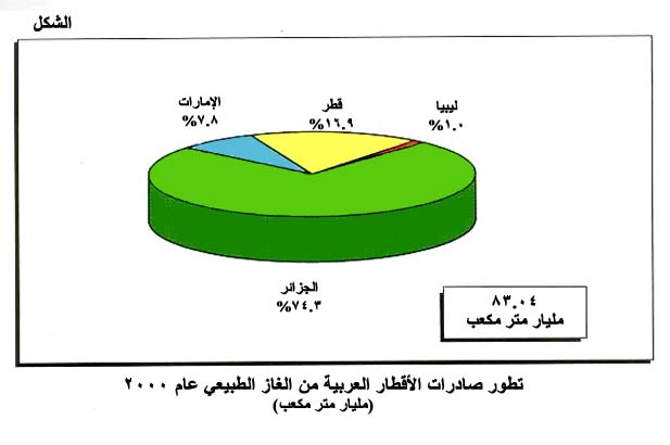 تطور صادرات الأقطار العربية من الغاز الطبيعي عام 2001