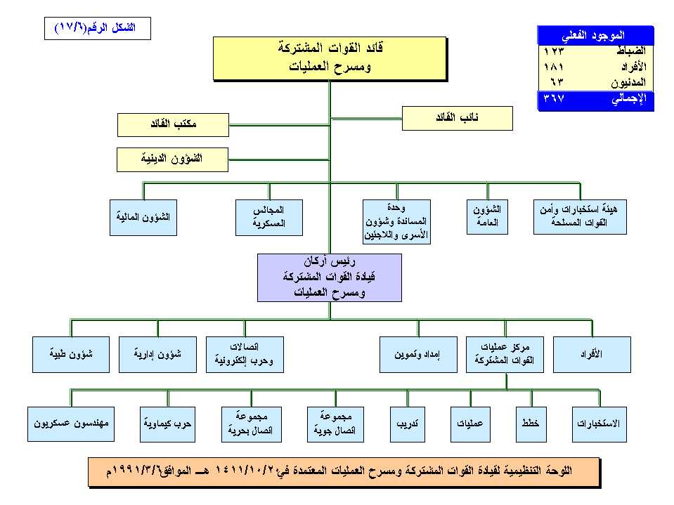 اللوحة التنظيمية لقيادة القوات المشتركة ومسرح العمليات، المعتمدة في 20/10/1411هـ الموافق 6/3/1991 م