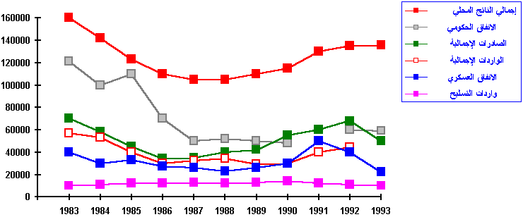إجمالي الناتج المحلي والإنفاق الحكومي والعسكري في المملكة العربية السعودية (1983 - 1993)