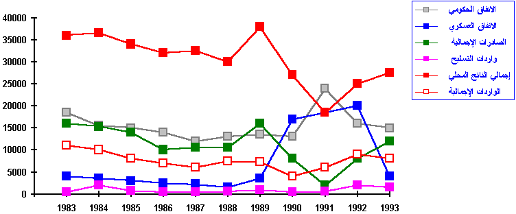 إجمالي الإنفاق الحكومي والعسكري في دولة الكويت (1983 - 1993)