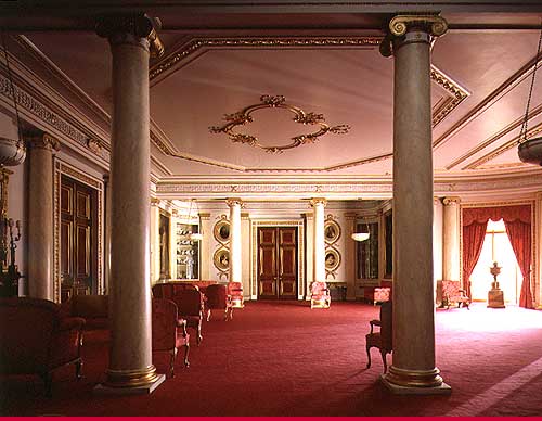 غرفة القوس في قصر باكنجهام، يقام فيها غداء الوصول، في أول يوم من أيام الزيارة الرسمية