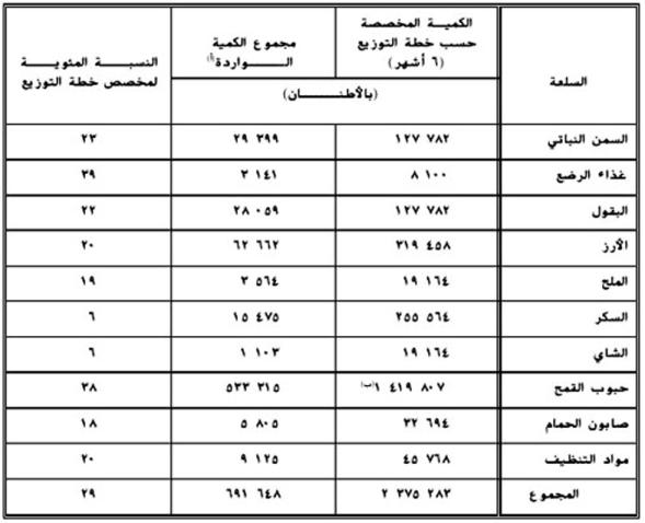 (ب) تبين أرقام خطة التوزيع الاحتياجات من دقيق القمح. وتقدر نسبة الناتج للدقيق المستخرج من حبوب القمح بـ 9: 10.