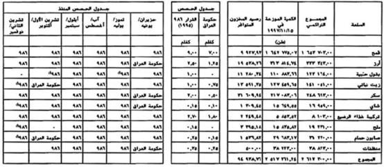 في 15 تشرين الثاني/نوفمبر 1997 وموازين الحصص التموينية المستخدمة