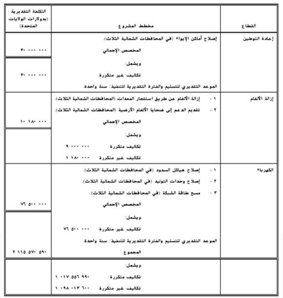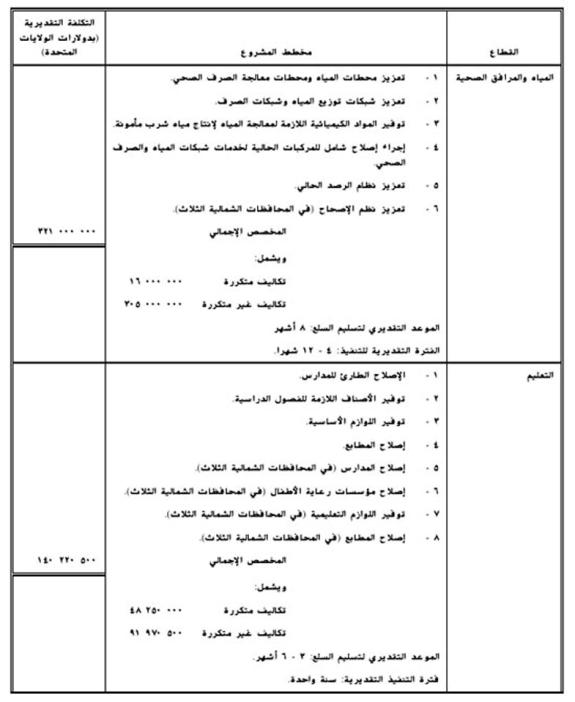 المشاريع المزمع الاضطلاع بها إضافة إلى خطة التوزيع الثالثة