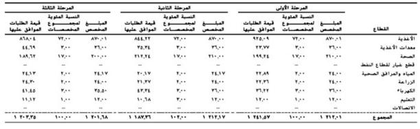 ألف - المخصصات القطاعية التي اعتمدتها حكومة العراق للمراحل الأولى والثانية والثالثة: