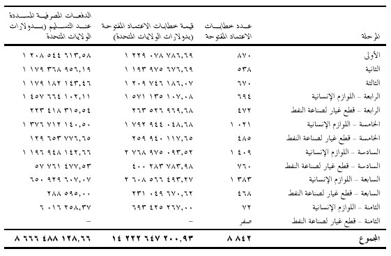 خطابات الاعتماد المعلقة بعائدات النفط واللوازم الإنسانية الصادرة