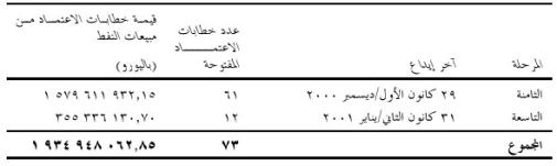 خطابات الاعتماد المتعلقة بعائدات النفط واللوازم الإنسانية الصادرة لغاية