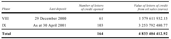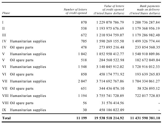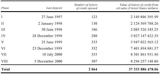 Oil proceeds and humanitarian supply letters of credit,