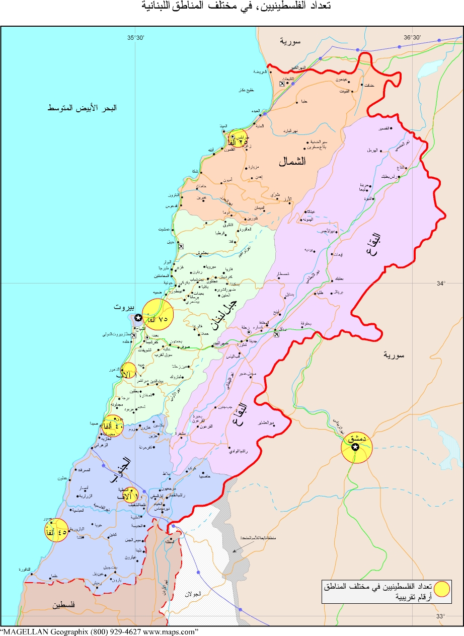 تعداد الفلسطينيين، في مختلف المناطق اللبنانية