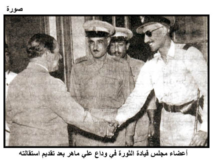 أعضاء مجلس قيادة الثورة في وداع علي ماهر بعد تقديم استقالته