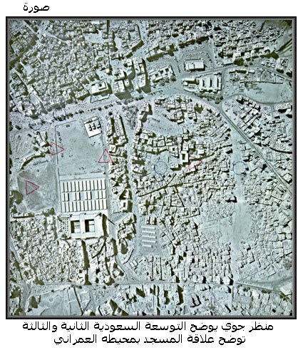 منظر جوي يوضح التوسعة السعودية الثانية والثالثة توضح علاقة المسجد بمحيطه العمراني