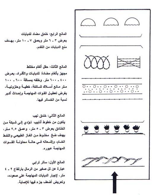 شكل تخطيطي للموانع الهندسية أمام الدفاعات العراقية الرئيسية