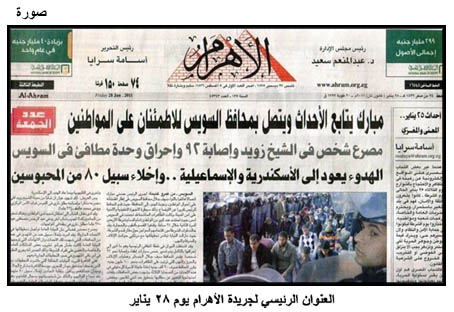 العنوان الرئيسي لجريدة الأهرام يوم 28 يناير