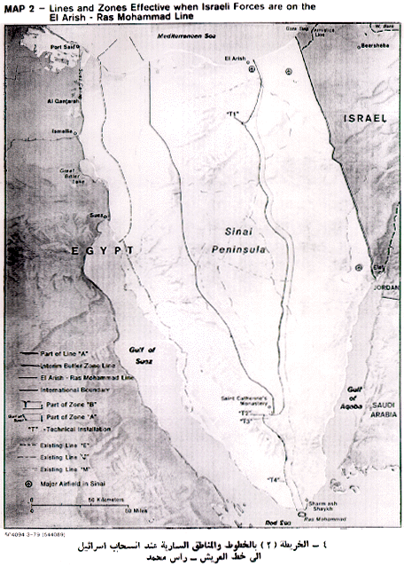5 - الخريطة رقم ( 2 ) الخطوط والمناطق السارية عند انسحاب إسرائيل إلى خط العريش - رأس محمد