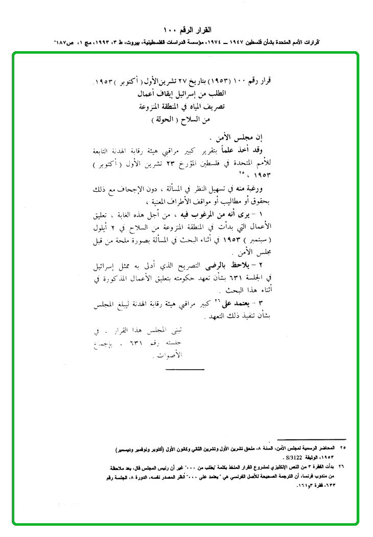 الطلب من إسرائيل إيقاف أعمال تصريف المياه في المنطقة المنزوعة من السلاح (الحولة)
