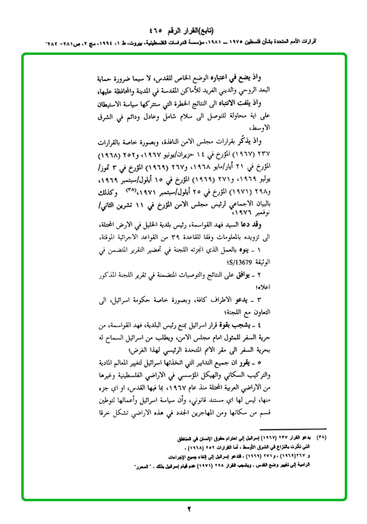 (تابع) مطالبة إسرائيل بتفكيك المستوطنات القائمة والتوقف عن التخطيط للمستوطنات وبنائها في الأراضي العربية المحتلة بما فيها القدس