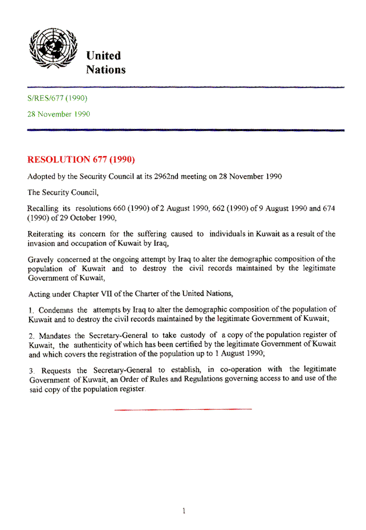 يدين محاولات العراق تغيير التكوين الديموجرافي لسكان الكويت